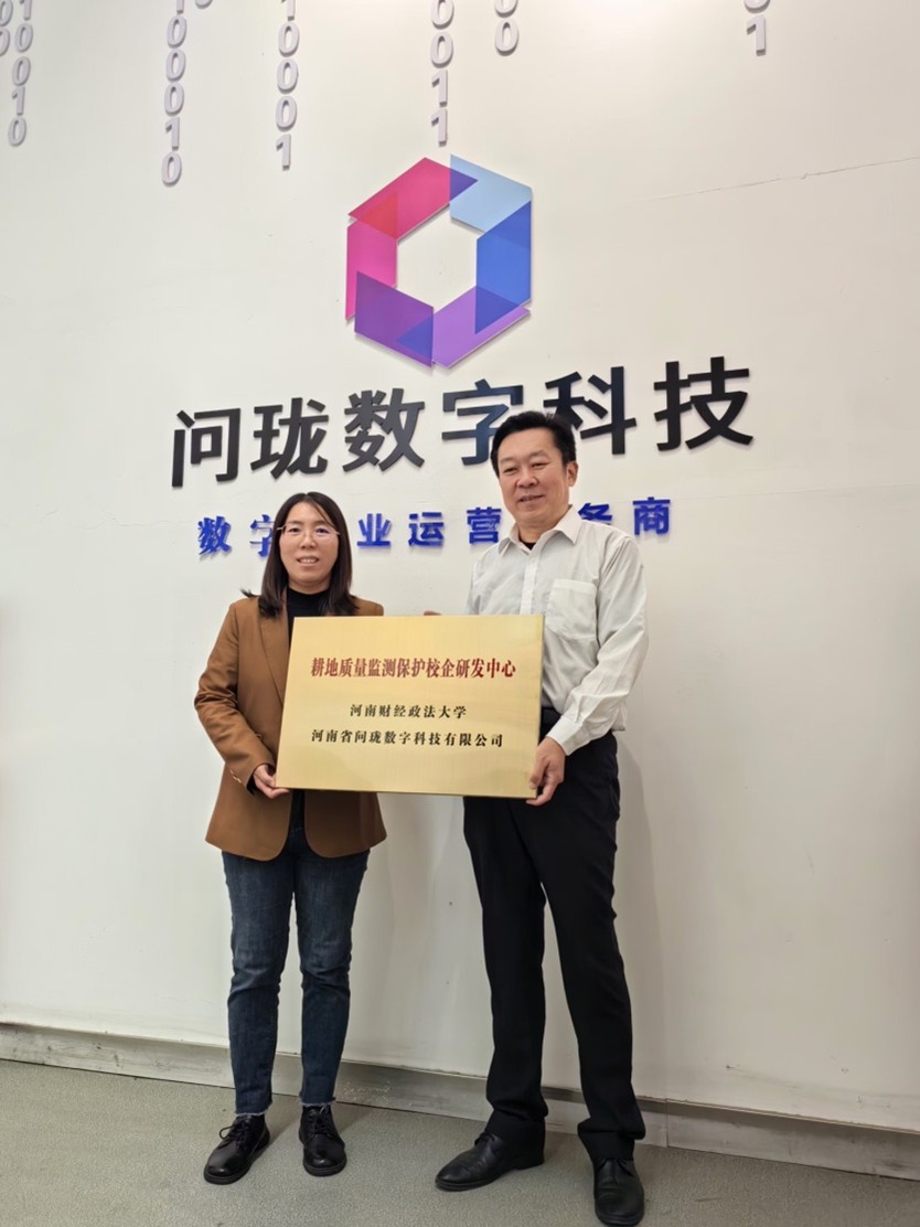 当日上午,在河南省问珑数字科技有限公司处,公司总经理刘晓介绍了公司在农业科技开发方面的发展历程,分享了公司目前在耕地质量监测保护方面的技术重点和成功案例,并与冰球官网教师进行深入交流,学院副院长朱丽娟与刘晓总经理就“耕地质量监测保护校企研发中心”进行签约和授牌。