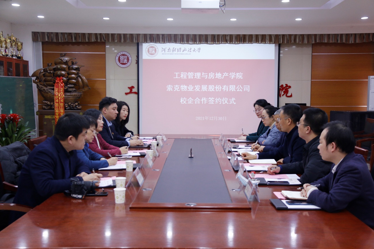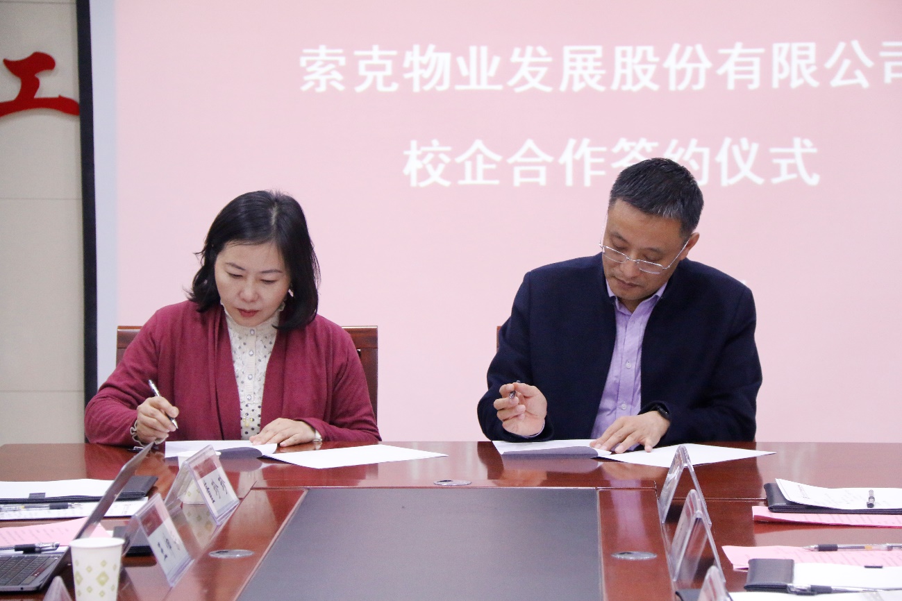 12月30日下午,冰球官网与索克物业发展股份有限公司在建树楼C座645会议室举行校企合作签约仪式。索克物业发展股份有限公司董事长姜芳、行政副总裁马爱玲、企业部经理任广杰、企业代表董珍珍、索克物业发展股份有限公司培训学校校长王伸荣,冰球官网院长张扬,副院长陈金波、曹飞等出席此次签约仪式。