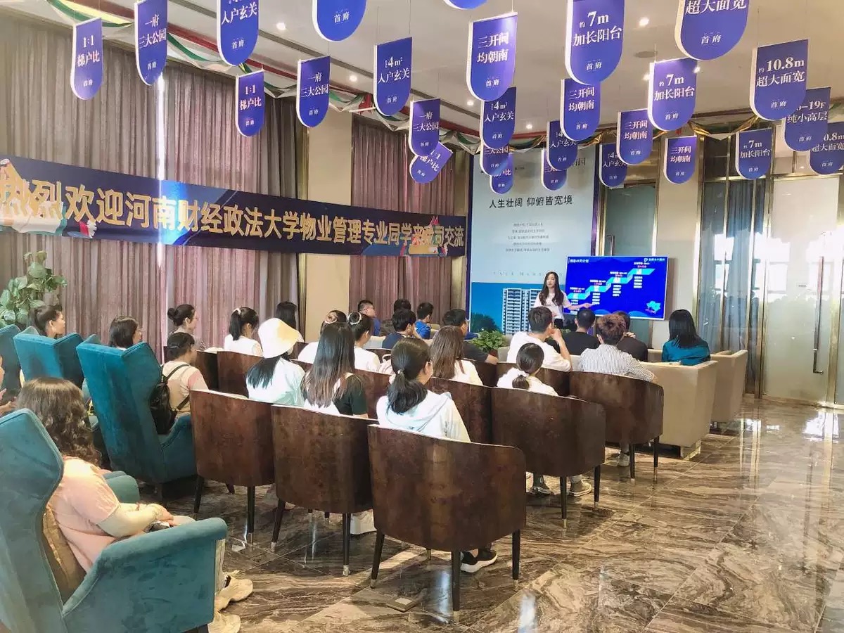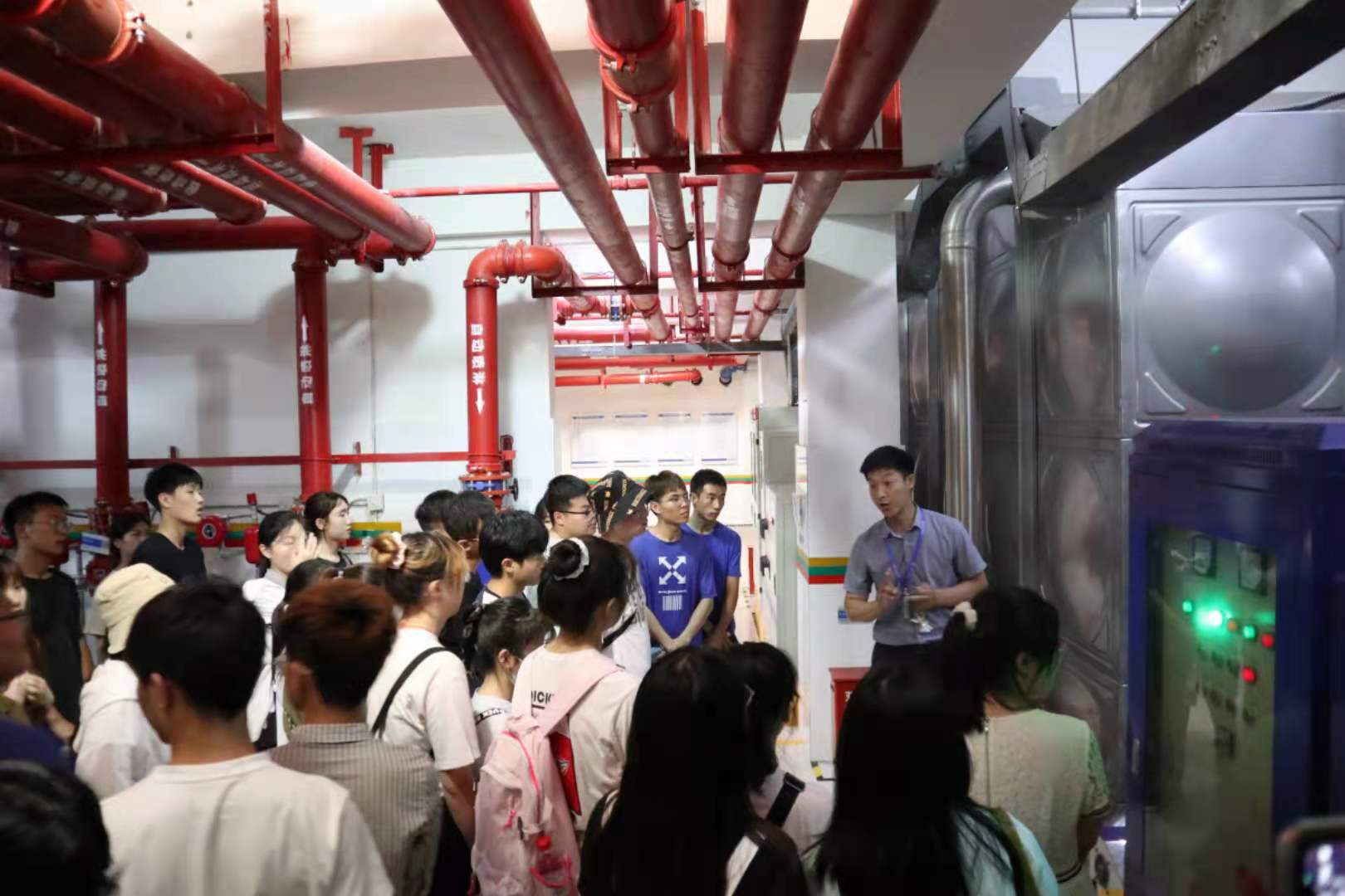 参观活动伊始,在旭辉·有园项目接待厅,旭辉永升服务河南片区人力资源部经理王朝臣、旭辉永升服务中部区招聘经理吴轩君、旭辉永升服务集团校招负责人朴知恩为同学们介绍了旭辉永升物业的发展理念和未来规划,同时对企业的用人标准和培养方案进行了分享。随后,在项目经理押晓军的引导下,同学们对园区的基础设施,绿化保洁和安保防卫系统进行了简单的了解。最后,高级工程维护主管李育锋就项目内的供水、供电、消防和闭路电视监控等系统的工作原理和流程,为大家做了全面而又详细的介绍。同学们通过近距离接触建筑设施设备实物,面对面同一线运维人员交流,深刻地认识到社区稳定运行的保障,离不开物业管理人员专业的知识储备和企业高效的运行管理制度。