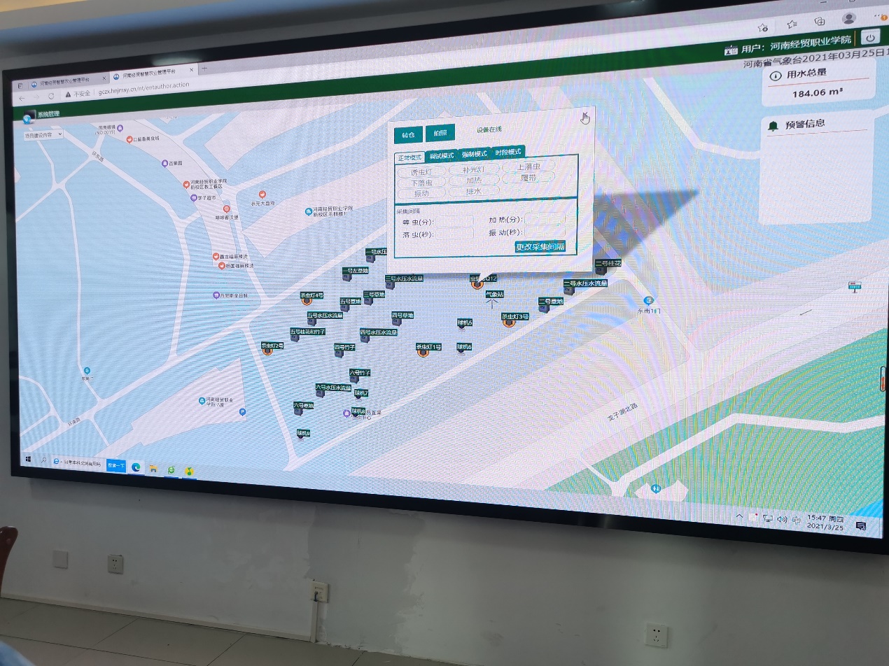 实验室依托河南经贸职业学院物联网专业群建设优势,着力开展物联网智慧农业项目。实验室负责人、原河南经贸职业学院物联网学院院长李存永及实验室主要成员、河南经贸职业学院金融学院党政办主任李祥带领一行人参观并具体讲解了其各种实体项目。各项实体项目主要用来检测和防治气象灾害以及病虫害、检测土壤湿度及成分、智能灌溉、实现水肥一体化等,以种植的冬凌草、菊花、玫瑰、桂花等作物为观察对象进行检测。