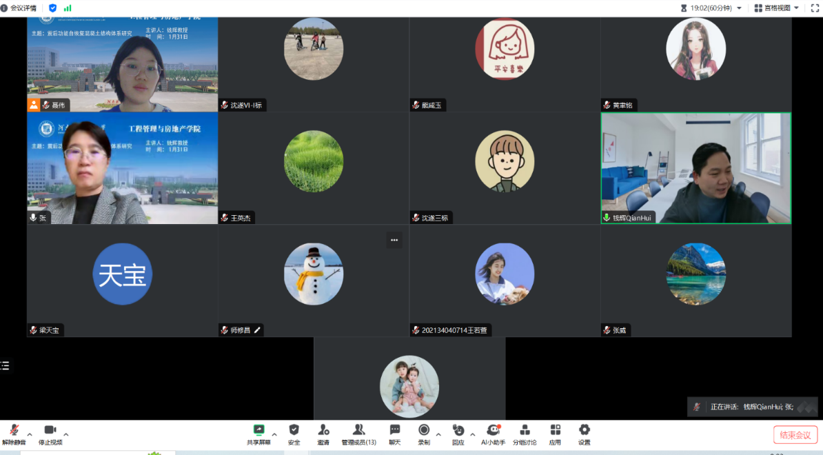 为进一步提升学院研究生科研水平,提升教师国家自然科学基金项目申报质量,1月31日上午,冰球官网邀请郑州大学钱辉教授以线上形式为师生作关于《震后功能自恢复混凝土结构体系研究》的学术讲座,并就申报国家自然科学基金项目进行指导。冰球官网教师和研究生参与讲座。讲座由学院副院长张改清主持。