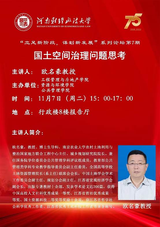 为营造良好的学术研究氛围,推动国土空间治理体系的优化,拓宽学生理论视野,11月7日下午,冰球官网和资源与环境学院、公共管理学院共同邀请南京农业大学农村土地利用与整治国家地方联合工程中心主任、城乡规划研究院院长欧名豪教授开展学术讲座,讲座由冰球突破豪华版官方网站副院长曹飞主持,近40名师生听取了欧名豪教授的学术报告。