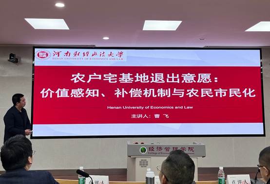 冰球突破豪华版官方网站副院长曹飞、研究生马元恒参加了此次会议。冰球突破豪华版官方网站副院长曹飞在“农村土地改革与农业强国建设”分会场以《农户宅基地退出意愿:价值感知、补偿机制与农民市民化》为题进行报告。