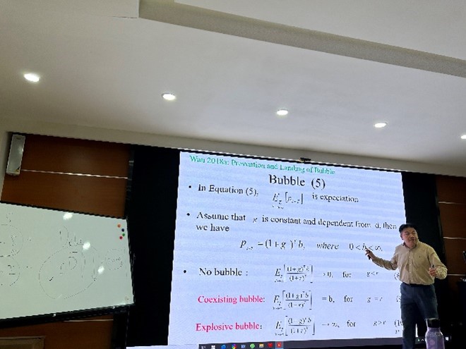 万军民教授以历史上英国南海公司引发的泡沫事件为引,将师生们带入对经济运行中泡沫问题的思考。随着南海公司股价的迅速上升,公众对该公司股票产生投机行为。不少投资者从商业银行贷款购买股票进行投机。商业银行对南海股票投资者的贷款利率快速上升,且高于正常利率水平。万军民教授将贷款利率和正常利率之间的差异界定为泡沫溢价。万军民教授认为,适当水平的资本利得税和托宾税税负可以防止泡沫,但效应不同。讲座中,他还介绍了房地产税与抑制泡沫间的关系。万军民教授勾勒了投机如何加剧实体经济失衡的研究框架,并以我国房地产行业是否存在泡沫及影响为案例,分享了其在这方面的研究。万军民教授的讲座将对房地产税收问题的研究带入整个宏观经济的框架,拓展了研究视野。