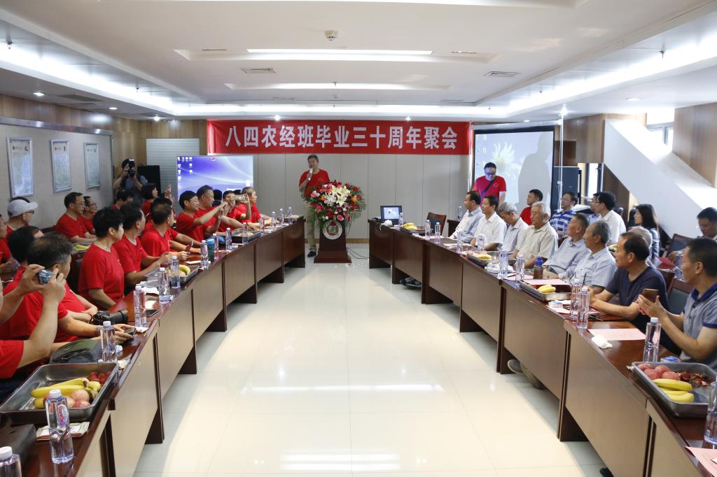 6月16日上午,冰球官网1984级农业经济专业学生重聚母校,学院于行政楼西配楼203会议室举办师生见面会。副校长李观虎、校友办主任杨伯坚、院党委书记杜纪锋、院长赵楠、院党委副书记李培媛、副院长张扬、多位退休及在任教师和1984级40余位校友参加此次见面会。见面会由关付新教授主持。