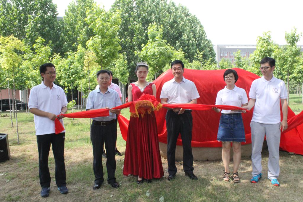 校研究生处处长李晓峰和院党委书记杜纪锋共同为纪念石捐赠仪式剪彩,03级校友代表赵万华、张松坡及赵崤含为纪念石揭幕。