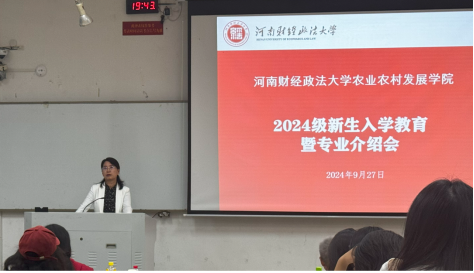 张改清院长首先对全体新生致以热烈欢迎,并对学院发展历程、师资力量、科研平台、学科特色等进行介绍。学院教师代表关付新教授结合自身学术经验和人生阅历,向新生们传授了宝贵的学习方法和人生哲理。随后,2024级农村发展专业研究生新生李斌、2023级农业管理研究生张高美、2022级农村发展专业研究生李佳豪以及2021级本科生郭美琦四位学生代表上台发言,分享了自己的学习规划、学习经验和成长感悟。新生入学教育之后,朱丽娟老师和陈卫华、丛胜美老师分别为研究生、本科生进行了专业介绍,进一步加深了新生对本专业的了解程度。