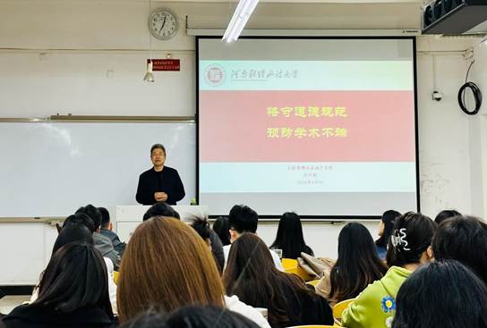 关付新教授以“恪守道德规范,预防学术不端”为题,围绕当前学术规范的相关背景、基本知识、问题分析、预防措施等方面,结合高校学术不端的典型案例,深度解析学术的基本规范,系统剖析了学术不端行为的危害,强调科研诚信“欲为而不可为”的重要意义,同时通过对问题成因的详细分析提出了针对性的预防措施。提醒学生要提高道德水平,增强防范意识,要不断提升自身学术能力和水平,重在要加强学生的学术道德建设。