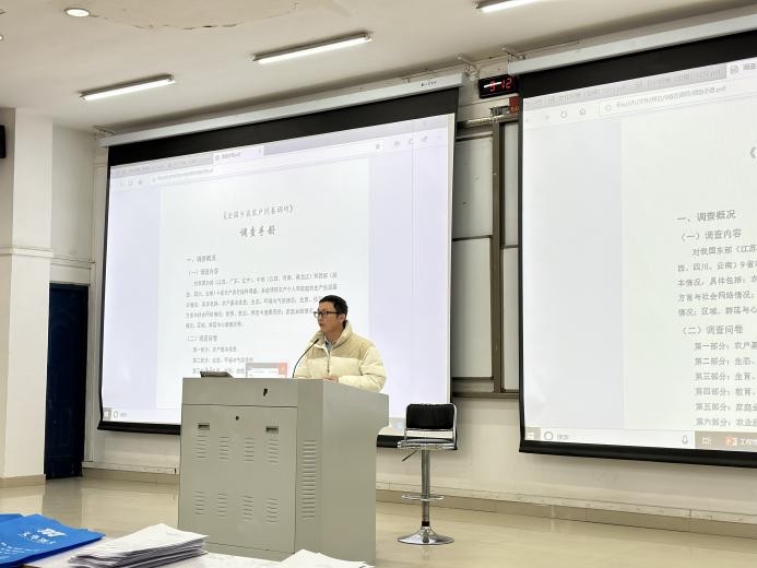 为了更好的开展本年度河南省农户问卷调研工作,2024年12月19日上午,冰球官网在教2-220报告厅为冰球官网24级农业管理专业研究生进行问卷调研培训会,华南农业大学胡浩钰副教授、黄文彬副教授作为指导专家负责此次培训。张改清院长、陈卫华副院长、朱丽娟副院长、丛胜美副院长,以及参与此次调研的农业硕士导师代表共同参加。本次培训由张改清主持。